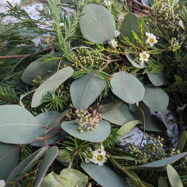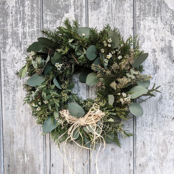The all natural fir and eucalyptus Winter wreath is perfect to bring the look and smell of Christmas to any door, wall, mantelpiece or table. Every wreath is handmade and unique using beautiful fir, eucalyptus and dried flowers sourced from Dartmoor.
