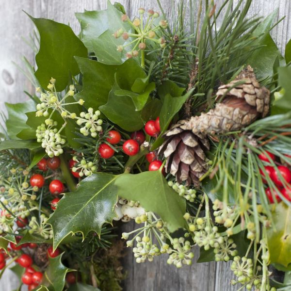 The all natural winter wreath is perfect to bring the look and smell of Christmas to your home. Every wreath is handmade and unique using beautiful evergreen foliage and berries sourced in Devon. The wreath is made from a mix of seasonal foliage with most elements picked from my garden or sustainably foraged. Wreaths include a mix of firs, pine, Holly and ivy and can be adjusted to individual requirements upon request.