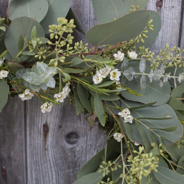 The all natural Eucalyptus wreath is stunning and brings a beautiful smell and look to any door, wall, mantelpiece or table. The blue-green hue of the eucalyptus and the incredible fragrance it has will really make you fall in love with the foliage in this wreath. Every wreath is handmade and unique using beautiful Eucalyptus sourced from Dartmoor. The wreath is made from a mix of seasonal foliage with Eucalyptus varying throughout the year, the wreath pictured will always be possible September - March. Wreaths include a mix of seeded, cinerea, willow and silver dollar eucalyptus and can be adjusted to individual requirements upon request.